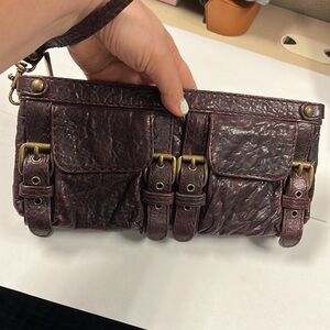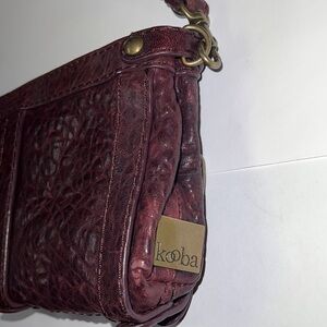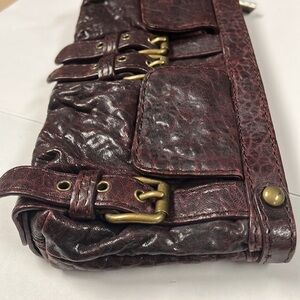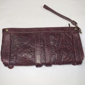 Kooba Wine Dark Red Leather Large Zippered Wristlet Clutch Bag