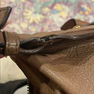 Kooba leather satchel in a pretty tan beige color with gold hardware. Has been worn, have added photos of the very worn parts. Otherwise in good condition.