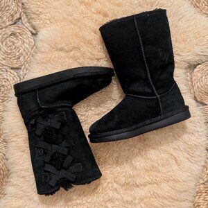 Like new, hard to find any scuffs black boots with bows.s Clean inside and out. Pull on and easy to remove.