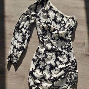 Kookai Ebony Black White Floral One Shoulder Mini Dress Size US 4. No flaws. Absolutely so stunning and stylish! Fabric has a beautiful, slight embedded texture which adds to the print. See last pic. Side zipper. Fits a true US 4. Price is firm. Includes FREE shipping.