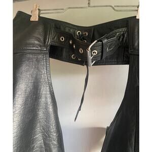 Kookie Genuine Leather Chaps Size XS Black Zippers 3 Button Snaps On Legs