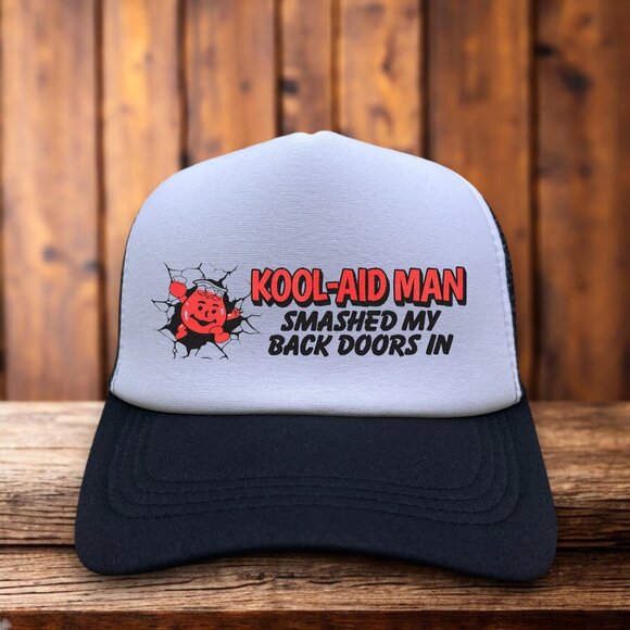 Kool-Aid Man Smashed My Back Doors In Mens Trucker Hat Black Funny Meme 90s Cap