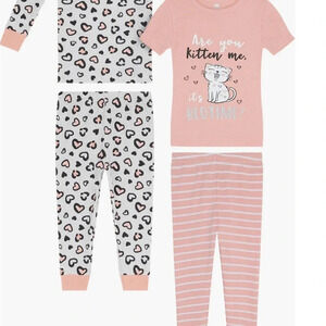 Koola Baby pajamas 4 piece set with short and long sleeves top crew neck pants with elastic waist. Kitten short sleeves. 100% Cotton machine wash