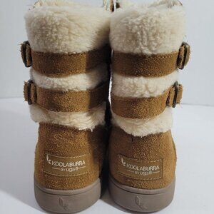 Koolaburra By UGG Girls Youth Short Suede Shearling Boots Size 3 Tan 1096445