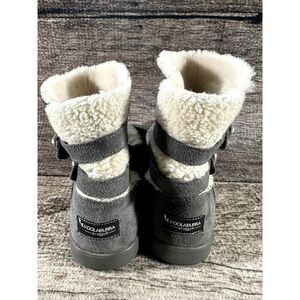 Koolaburra By UGG Koola Short Gray Suede Women's Boots. Size 9. In good condition! Suede leather boot. Sherpa material on the cream colored parts. Buckles on the straps on the side. Plenty of tread.