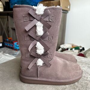 Koolaburra By UGG Victoria Tall Boot Kids' size 3 Cocoa Brown Bows Cozy Winter
