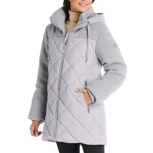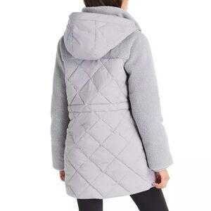 Koolaburra By UGG Women XXS Gray Sherpa Quilted Mixed-Media Puffer Coat NWT