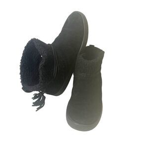 Koolaburra By Ugg Women 8 Black Suede Faux Fur Ankle Boot Casual Comfort Pull On