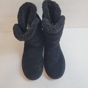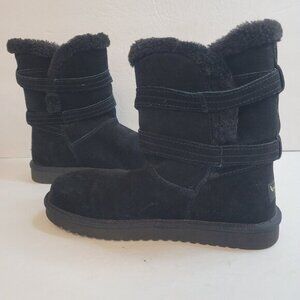 Koolaburra By Ugg Womens Delene Suede Boots Size 8 Slip On Faux Fur Trim Y2K