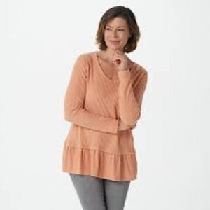 Koolaburra By Ugg Women's Grey Flecked Waffle Knit V-Sweater Top Causal Large