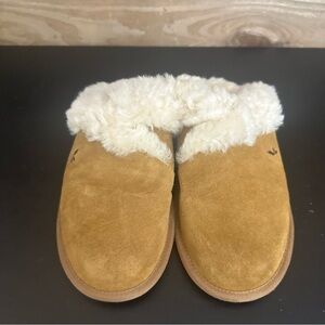 These Koolaburra by UGG, tan suede faux fur lined slip on shoes are a ladies size 10 and are in good preowned condition. Please see photos as they are part of the description and show the wear and condition of the shoes. Questions? Leave a comment below!