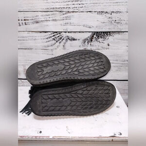 A sized-down iteration of the Jaelyn Short, the mini merges the same ultra-plush sheepskin and faux fur lining with a soft, suede exterior. Taking cues from the tassel trend, we’ve finished the pint-sized number with swinging fringe for just a touch of festival flair. Great condition, however one of the boots is missing the tassel on the back.
