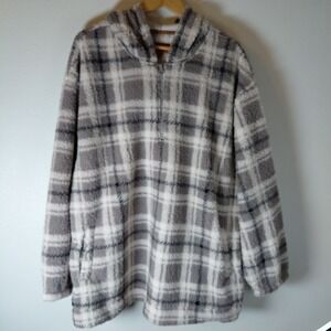 Koolaburra UGG Brushed Back Sherpa Hoodie Pullover Portobello Plaid 2X XXL 1/4