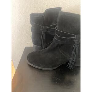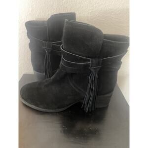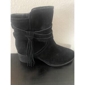 Koolaburra UGG Kenz Black Suede Tassel Block Heel Ankle Boots Size 8