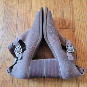 Koolaburra UGG Open Toe Suede Booties Buckle Strap 6.5 Heeled Sandals SOPHY