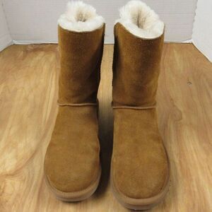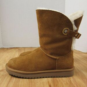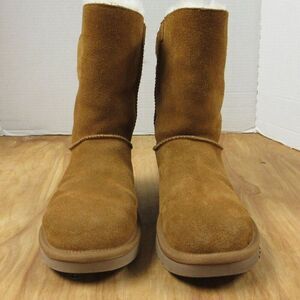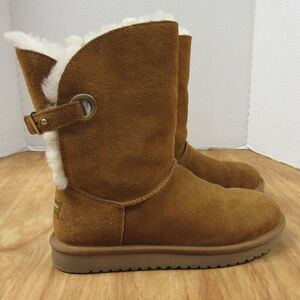 Koolaburra UGG Remley Short Chestnut Boots Sz 8 Slip On Suede Leather Fur Bootie