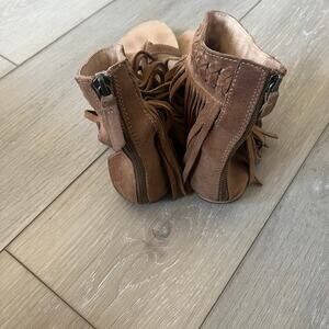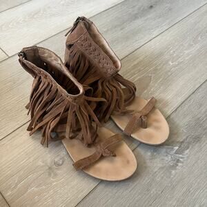 Koolaburra Women's 8 Tan Suede Leather Fringe Moccasin Sandal Gladiator