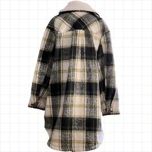 Here is a Koolaburra Ugg Sherpa Collar Shacket Women Large Gray White Buffalo Check Plaid