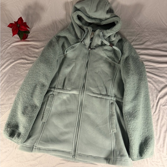 Cozy mint teddy jacket with hood. Soft and warm for chilly days. Great condition message if you have any questions