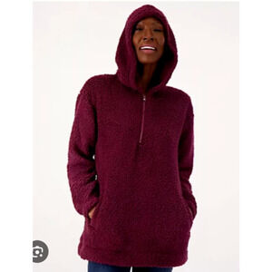 Koolaburra by UGG Brushed Red Sherpa Hoodie Pullover Fig Small Fleece Burgundy