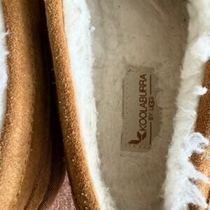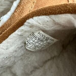 Brand new Koolaburra by UGG chestnut suede slippers in men's size 10. Soft genuine suede upper with ultra-warm faux shearling lining and cushy sole—perfect for lounging at home or cozying up by the fire. Easy slip-on mule design with a durable outsole that’s great for indoor and quick outdoor use. Ideal for Father’s Day, graduation season, Christmas gifting, or just staying warm year-round.