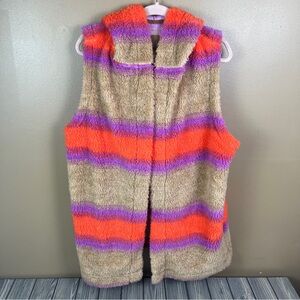 Koolaburra by UGG Colorful Striped Fuzzy Vest Sherpa Hooded Vest Women's 1X