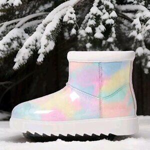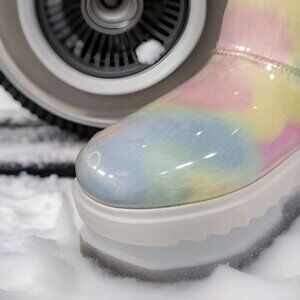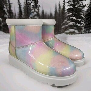 NEW !! Step out in style with these Koolaburra by UGG Koola Clear Pastel Abstract Waterproof Boots. Perfect for any occasion, these ankle boots feature a round toe shape and pull-on closure for ease of wear. The boots are made with one-piece injection uppers and lined with faux fur for added comfort.