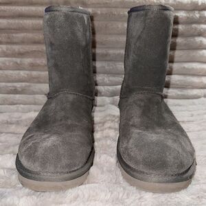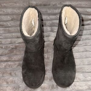The boots are available in women's size 8 and are perfect for any occasion. The shearling style boots are stylish and versatile, making them a must-have addition to your winter wardrobe. Get your hands on these UGG boots today and stay warm and fashionable all season long.