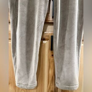 Super cozy tanish gray velour pants by Koolaburra by Ugg. Ideal for cozy days. Lounging, relaxing, soft, warm.
