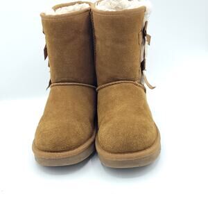 Free USPS Priority Mail shipping on this Koolaburra by UGG Victoria Short Boot in Chestnut, model 1015874, women's size 5. These cozy winter favorites feature plush genuine suede uppers in rich chestnut brown, luxurious faux-fur lining and cuff, decorative bow detail, and a lightweight EVA outsole for indoor-outdoor comfort at a fraction of full UGG pricing. Perfect for keeping toes toasty while adding that classic Aussie shearling vibe to jeans or leggings all season long. Please check photos for any damage and condition to ensure they meet your expectations. If you have questions or offers, feel free to message me!