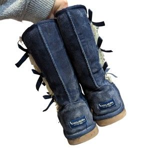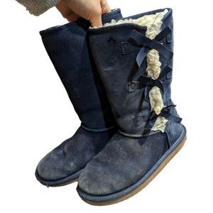 Koolaburra by UGG Victoria Suede Bow Tall Boots Navy Blue Womens Size 5 1020171