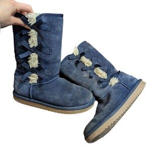 Koolaburra by UGG Victoria Suede Bow Tall Boots Navy Blue Womens 1020171 Size US 5