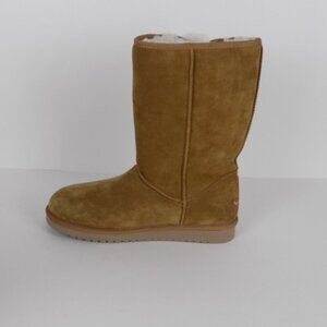 Koolaburra by UGG Victoria Tall Boots New in Box One boot is Slightly Lighter than the other see photos Color Chestnut Size 11W 11 Wide Tall, Pull-on Boot Suede upper Fashionable bows, Decorative faux fur Faux fur lining Wool sockliner or 17mm Poly-wool blend sockliner, 80% polyester, 20% wool Molded EVA midsole EVA outsole 10" shaft height Shaft circumference: 14.0" Style Tags Dress, Casual, Warm, Winter, Fall R2/0559