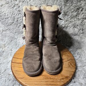 Koolaburra by UGG Womens Size 7 Cutesy Beige Fur Ribbon Victoria Mid Calf Boots