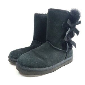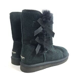 Koolaburra by UGG Womens Size 8 Black Suede Ankle Boots With Bows & Pom Poms