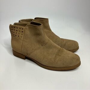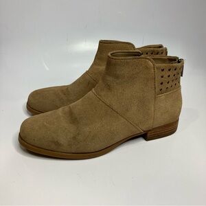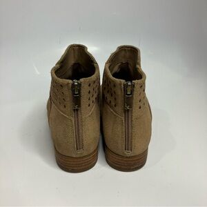 Shows some light discoloration on the suede from wearing, please see additional pictures. Not super noticeable when wearing imo.