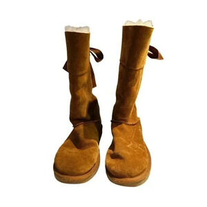 Koolaburra by Ugg "Andrah" Tall Chestnut Suede Bow Tie Boots size 11 Pre-owned