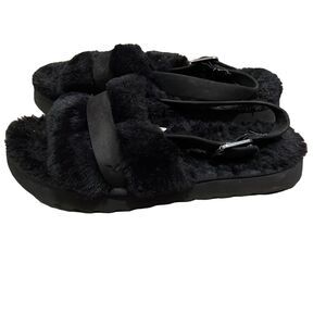 Koolaburra by Ugg Black Fuzz'd Out Faux Fur Slide Sandals Womens Size 10 EU 41