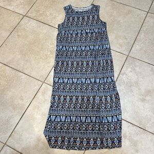 Like new Koolaburra by Ugg Printed Maxi Dress women’s size M. 95% rayon/5% spandex, blue tribal print, stretch knit material-super soft, round neckline, Sleevless, maxi length, side slits. Offers accepted!