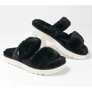 Koolaburra by Ugg Faux Fur Slide Sandals Fuzz On in Black