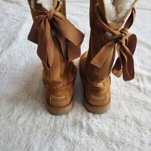 Koolaburra by Ugg Tan Suede Andrah 1105791 Tall Bow Fur Lined High Boot Women 6