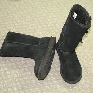 Koolaburra by Ugg Women's 4 Black Victoria Suede with Bows Mid Calf Flat Boots
