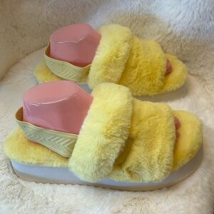 Koolaburra UGG bright yellow 1-1/2 platform sandal shoes with hugging elastic strap backs. Fun fluffy soft sandal. Worn them around the house for a day. Like new.