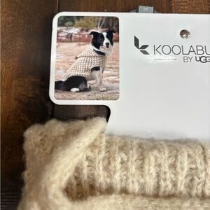 Stylish cream sweater hoodie for dogs. Keeps your pet cozy and fashionable.