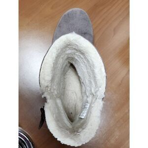 This is a cozy pair of pre-owned Koolaburra by Ugg gray boots lined with sherpa. They are pre-owned with minimal wear. They are a size 4. It is style number 1096445. Preview pictures for a visual description before purchasing.