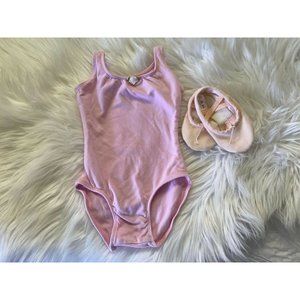 Lot of Koolen Girl's Dance Leotard Ballet Pink Size Small with Ballet Slippers. Slippers are 5" (no size tag). Pre owned. Clean.