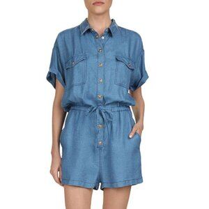Kooples Romper Womens Medium Blue Short Drawstring Waist Chambray Jumpsuit (2)