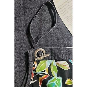 Koos OF Course! Charcoal Denim Aline- Overall Jumper Dress Size L New Black Floral Applique- With Pockets