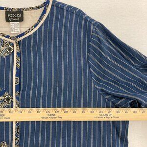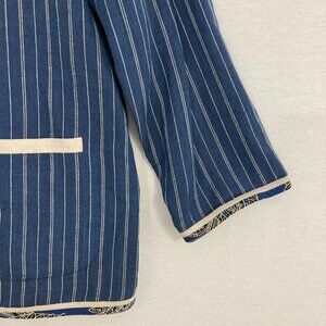 Koos Of Course! Blue Striped Linen Blend Artsy Boho Button Jacket size 2X