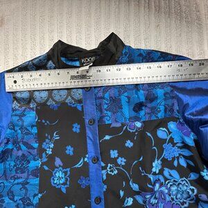 Koos Of Course Women's Long Sleeve Button Down Top Silk 1X Blue Floral Patchwork